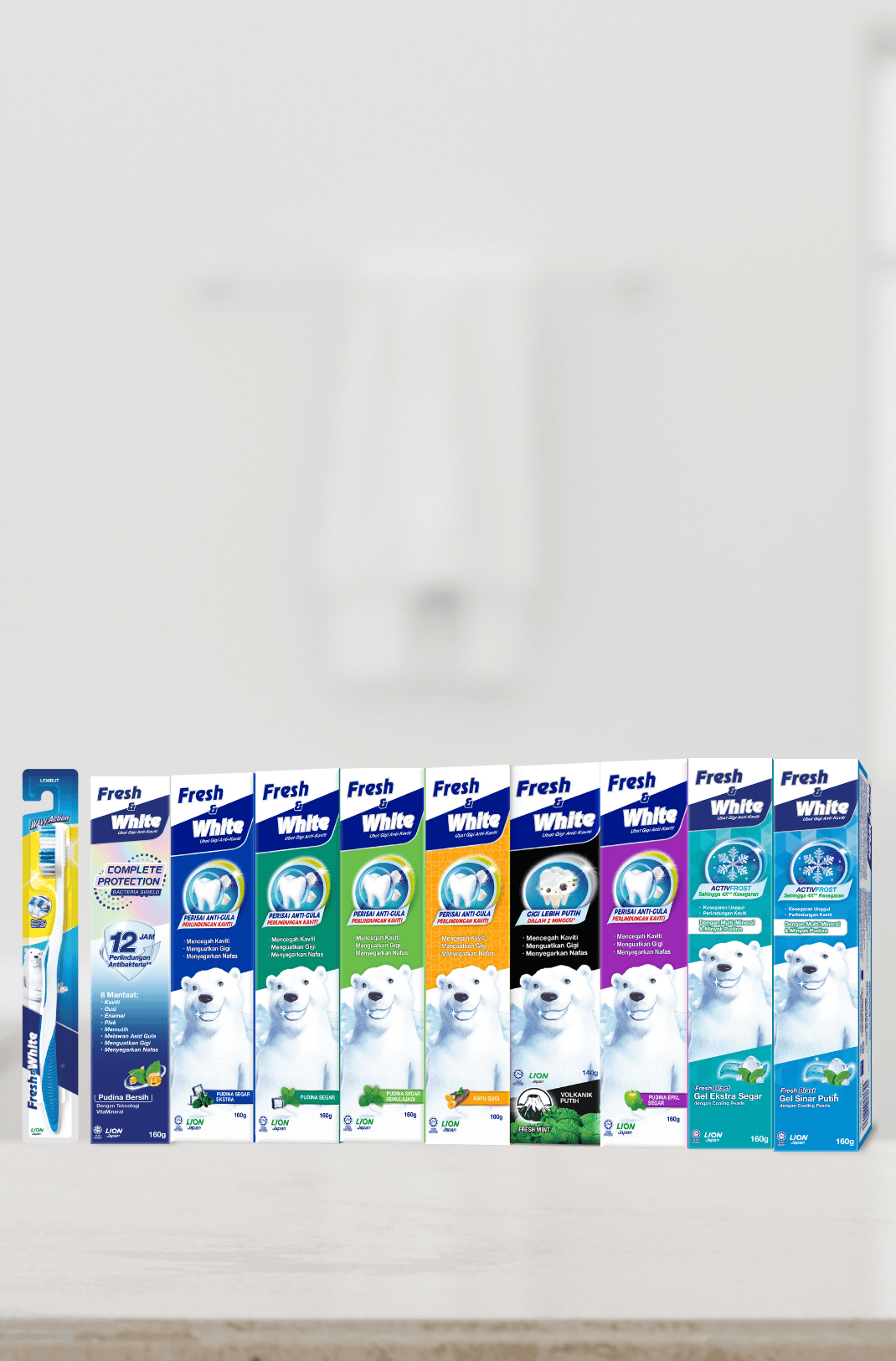 Fresh & White toothpaste is an ideal choice for families, offering a perfect balance of freshness, coolness, and affordability. It provides Strong Teeth and Fresh Breath to consumers supported by its latest Anti-Sugar Shield technology which forms a protective layer around the teeth enamel, strengthening it and shielding against the sugar acids produced by bacteria, helping to prevent cavities.